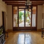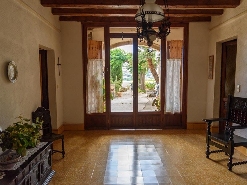 Por la parte sur está la entrada principal para la familia Suriol con un espacio ajardinado conocido como el baluarte del castillo. La entrada es la típica de las casas de la zona con cancel y doble puerta para proteger de frío y calor. Hay bastante espacios interesantes como el comedor con suelo hidráulico y muebles originales hechos “in situ”, la sala con la galería de antepasados, las habitaciones que dan al baluarte con muebles antiguos o la galería chica, espacio especialmente agradable habilitado como despacho biblioteca.